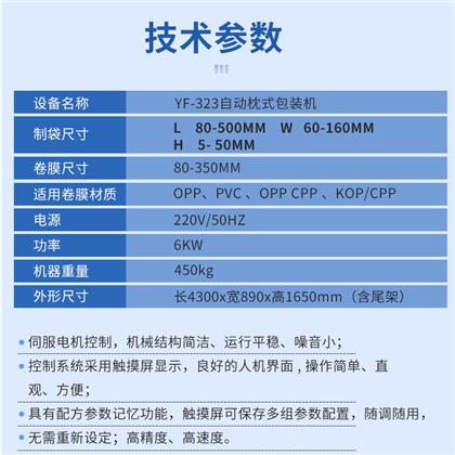 制袋高度:雙刀5-40mm 單刀5-50mm" "1.伺服電機(jī):逸飛訂制